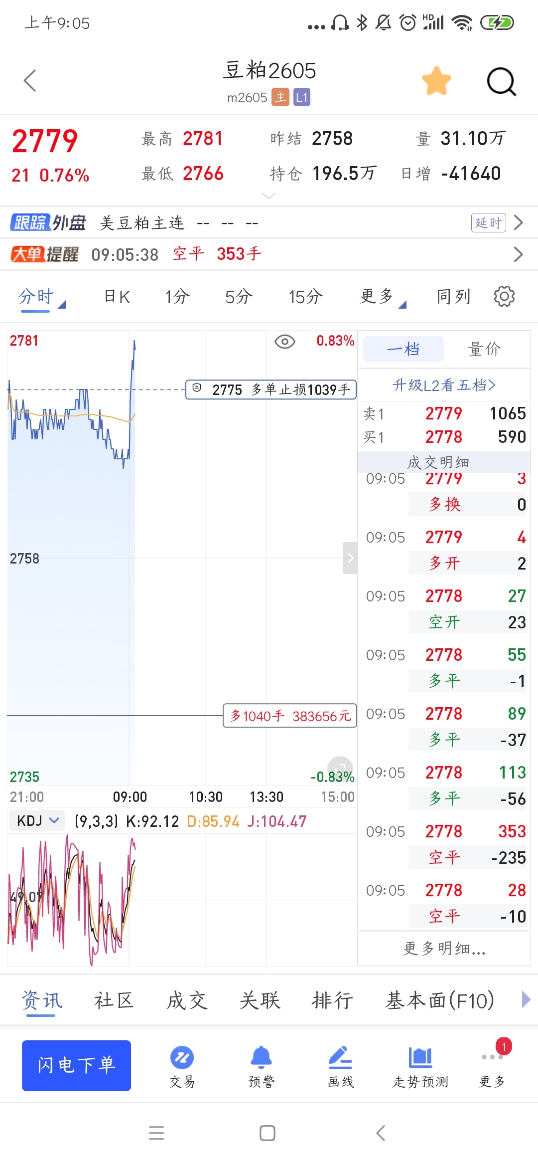 $豆粕2605(DCE|m2605)$ $豆粕ETF(SZ159985)$ $海外科技LOF(SH501312)$ 设好止损,模拟盘给我冲