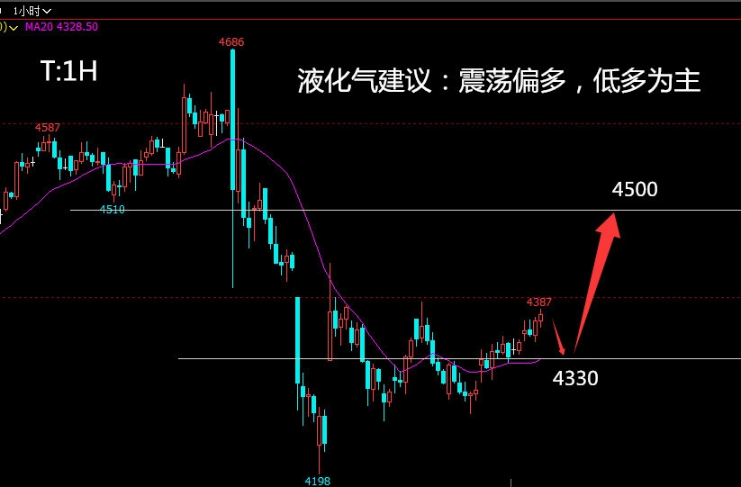 液化气2506:液化气自底部震荡回升,短期的结构形态有延续回升之势,后续布局低位多单为主。操作建议,液化气回调测试4330区域支撑企稳可择机多,目标看上方4500区域,止损放在4280附近。
