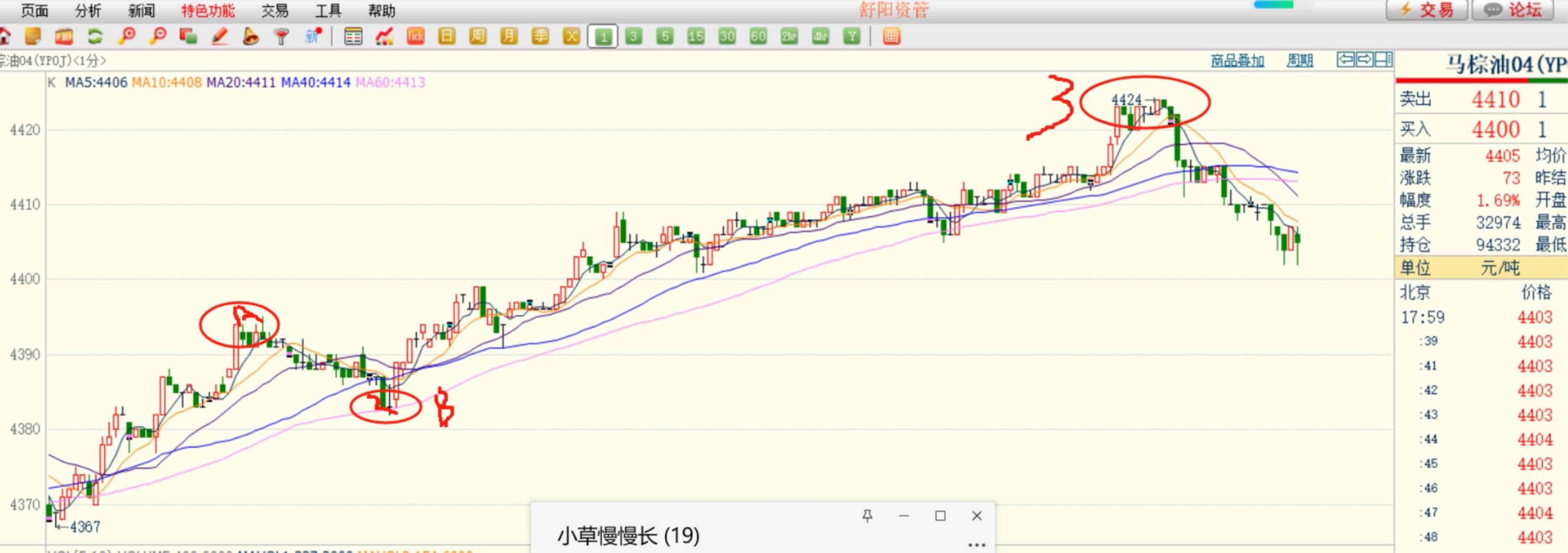 夜盘棕榈油开盘点位:8732!最高极限点位:8794!最低点位:8676!!如果高开了我们就在8768附近加仓做空跟进一手!利用低开回落下来8708附近做个踢!等于把下午空单止损离场!