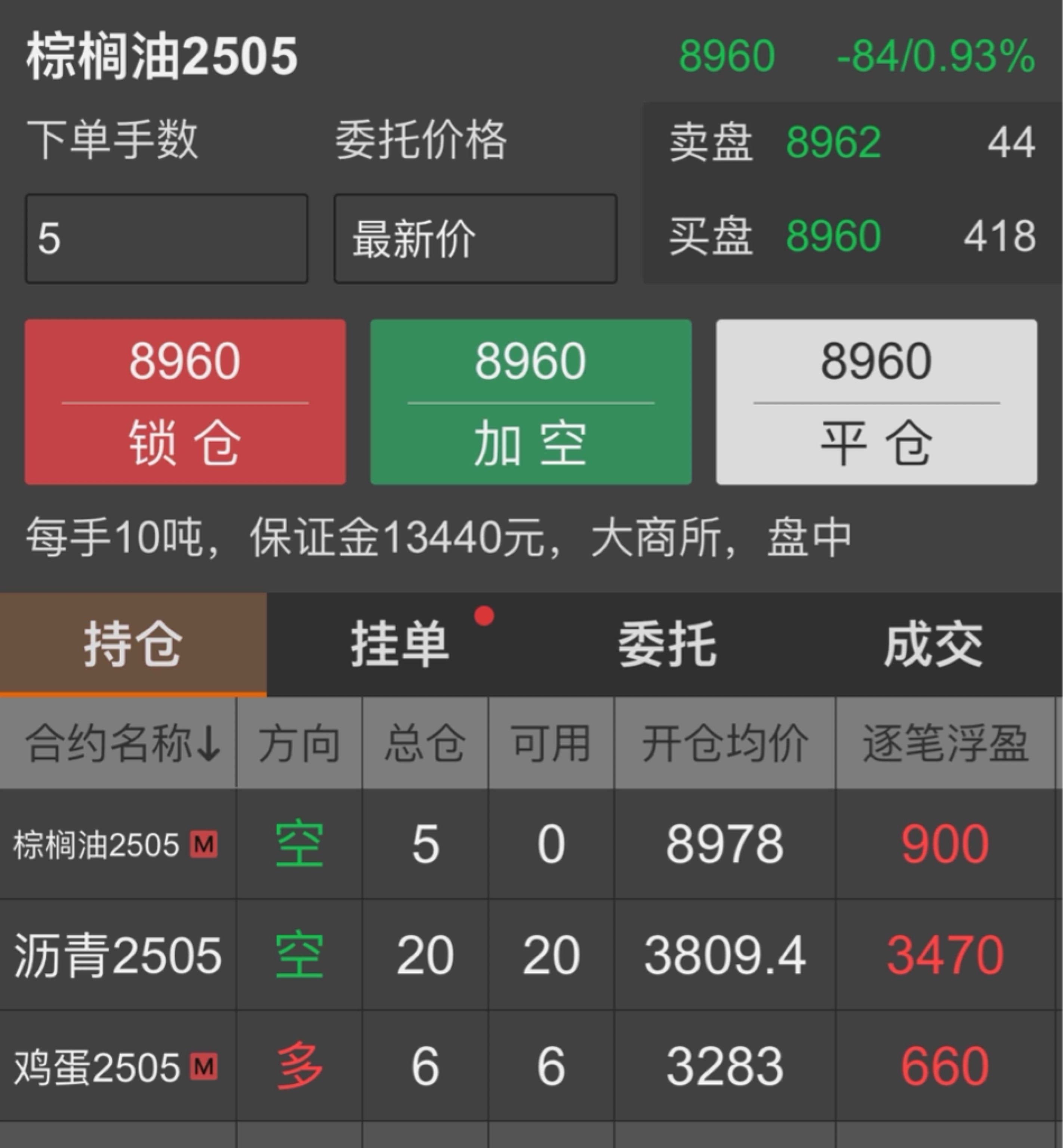 $棕榈油2505(DCE|p2505)$ 8978反手又做空喽嘿嘿
