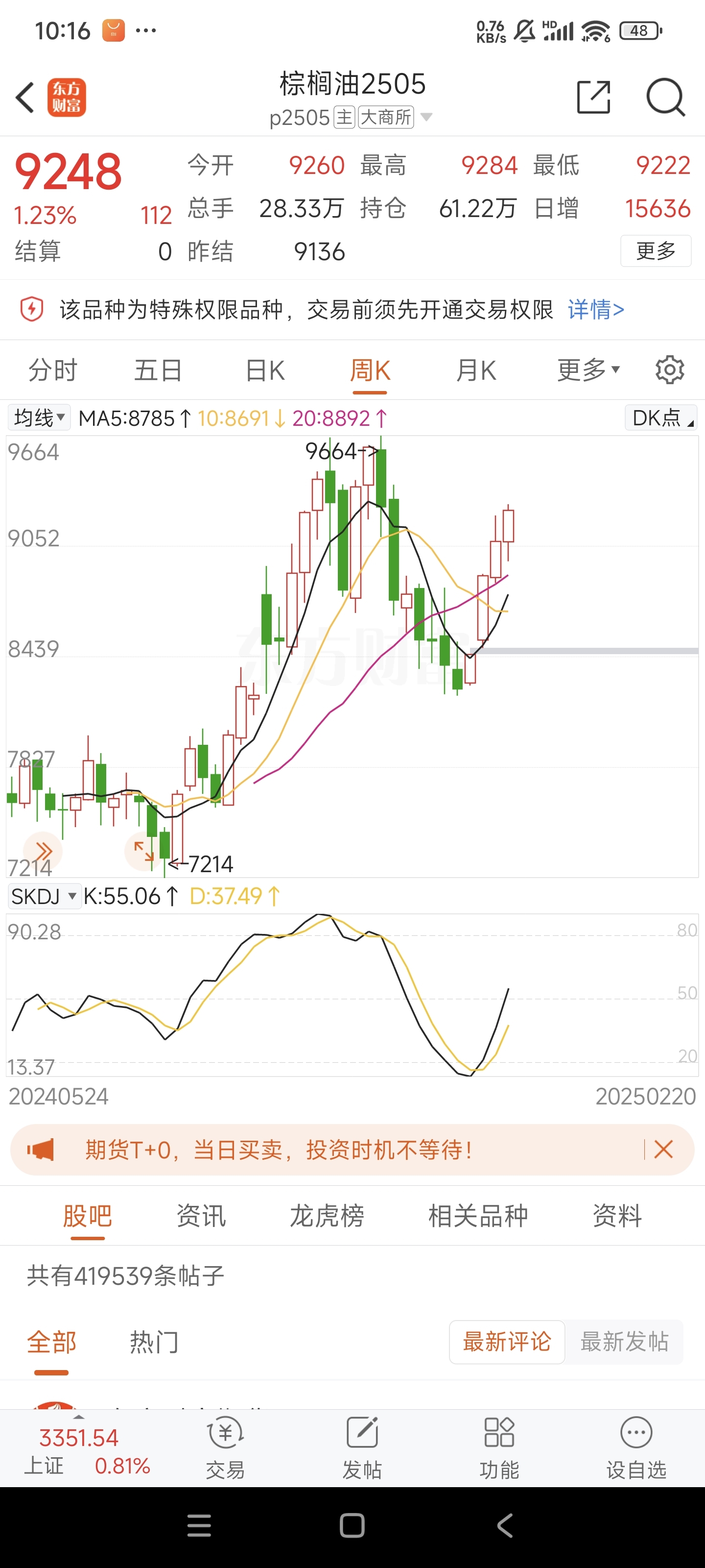 $棕榈油2505(DCE|p2505)$ 前面那些8500多做空的,8600做空的,你看看这个KDJ金叉,怎么会做空的?不知道它们亏了多少了