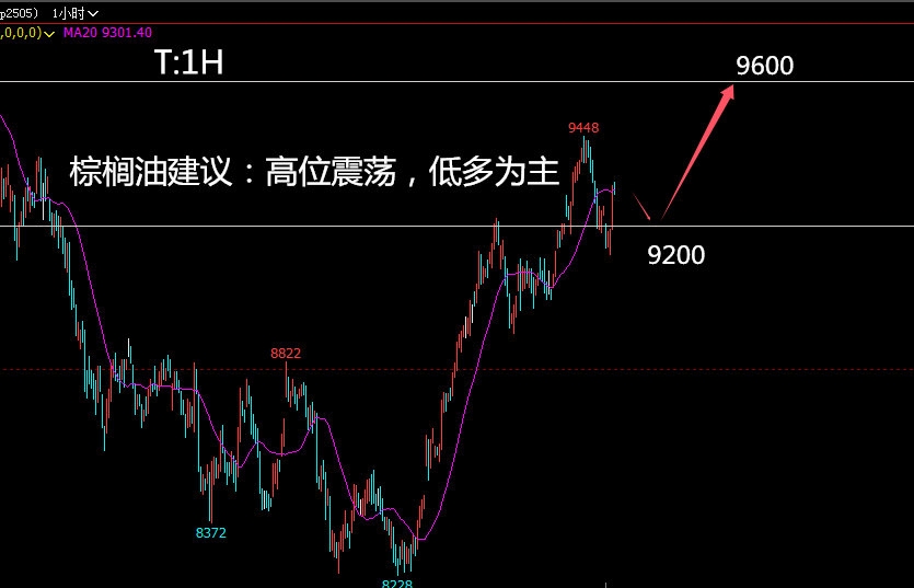 棕榈油2505:棕榈油处于高位震荡整理,高位回撤修正之后,行情再次震荡上扬,大的趋势形态依然偏多,后续布局建议顺势而为,低位多单为主。操作建议,棕榈油回调测试9200一线企稳不破可进场多单,目标看上方9600一线,损100个点。