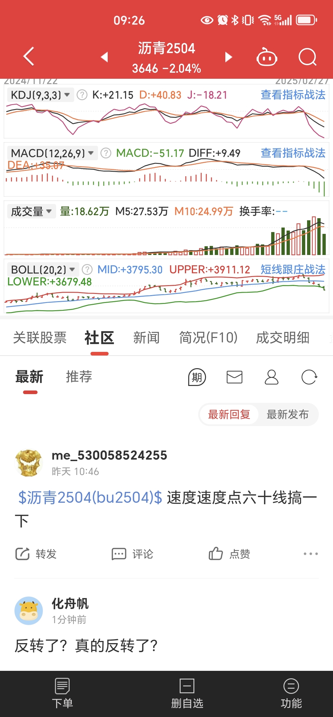 $棕榈油2505(DCE|p2505)$ 沥青完成,棕榈油赶紧给我二十线搞一下