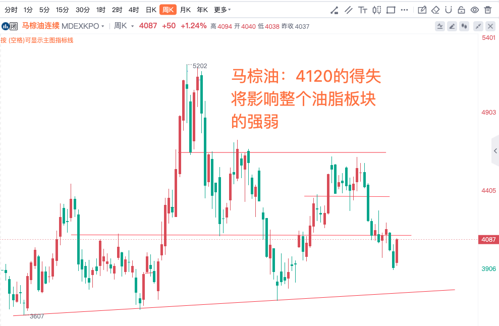马棕油:4120的得失将影响整个油脂板块的强弱,棕榈油:8600就是短期的强弱分