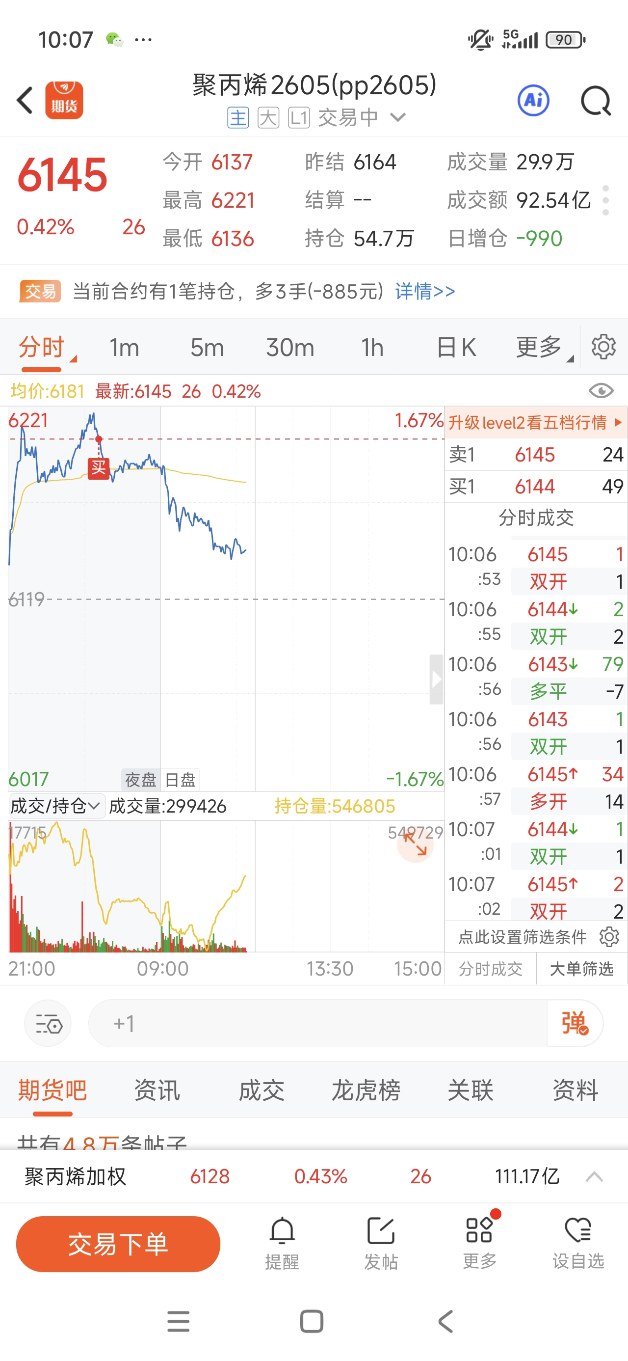 $聚丙烯2605(DCE|pp2605)$ 服了,又高位接了,