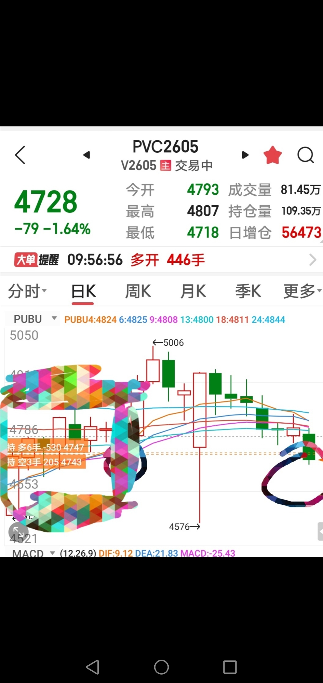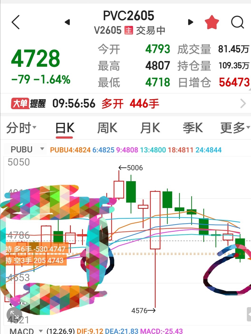 想看我的持仓的,最下面的两图内有,本来打算是跌破4700加到10手以上的,没给机会,必着我逢高平多反手开空!!!