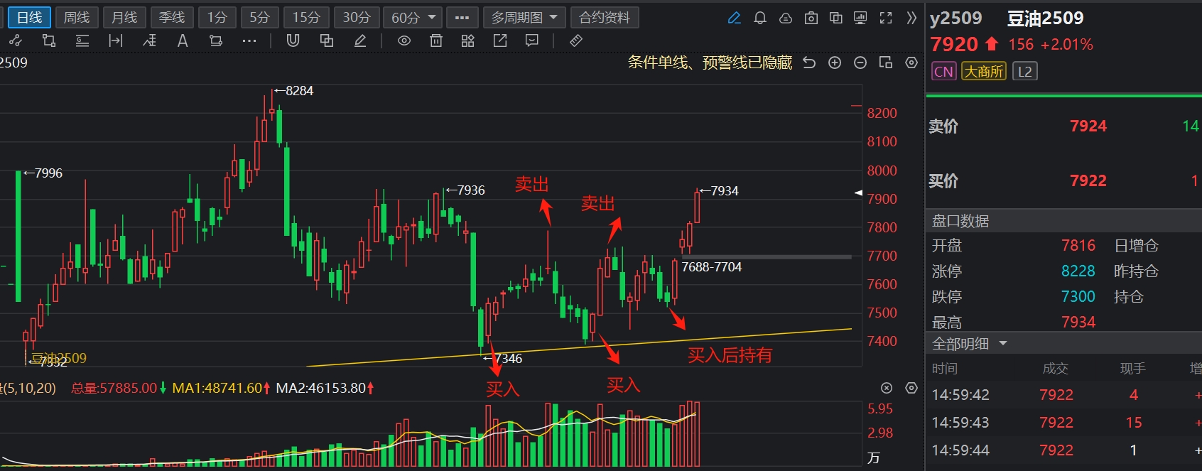 豆油的操作,目前多单一直在持有(波段,很少做日内),仓位目前30%左右,今天建仓