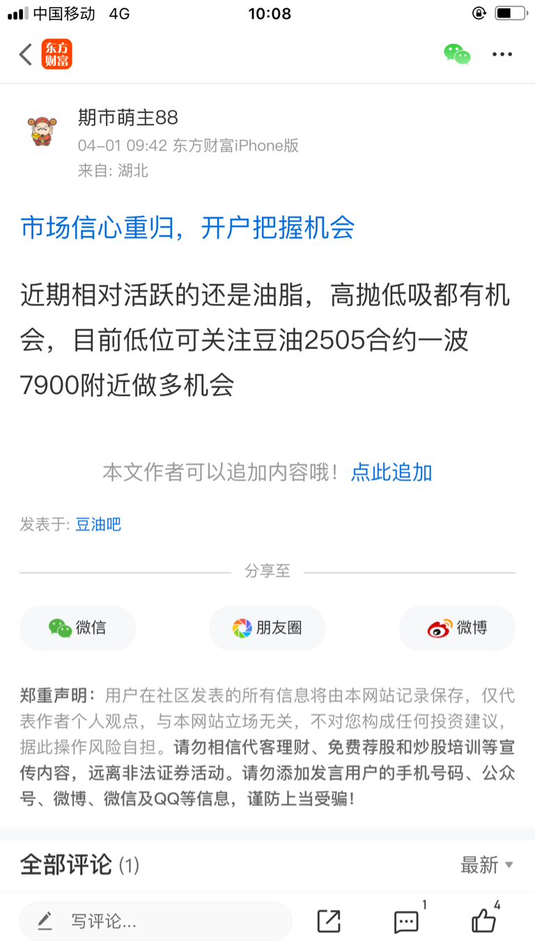 温馨提示: 1.根据《证券法》规定,禁止编造、传播虚假信息或者误导性信息,扰乱证券市场;2.用户在本社区发表的所有资料、言论等仅代表个人观点,与本网站立场无关,不对您构成任何投资建议。用户应基于自己的独立判断,自行决定证券投资并承担相应风险。《东方财富社区管理规定》