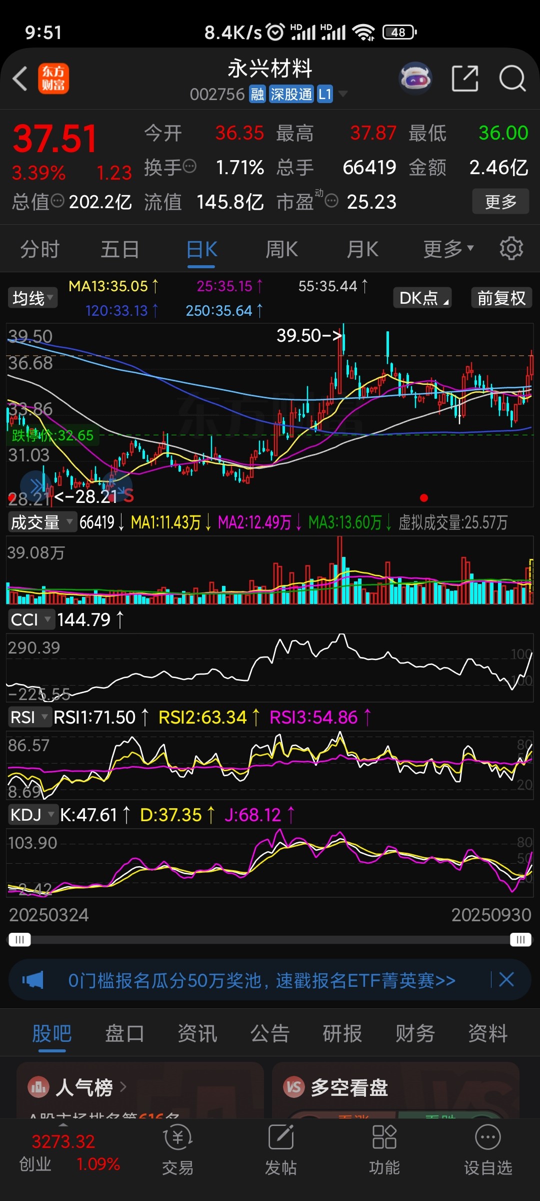 $永兴材料(SZ002756)$ 近几天要分红了。目前估值低估,按照分红蓝筹股测算股价0.8/0.015=53.33元。目前市值是特钢业务加现金,锂矿业务是负值。年报业绩预测1.8元/股,市盈率不足20倍。$天齐锂业(SZ002466)$ $赣锋锂业(SZ002460)$