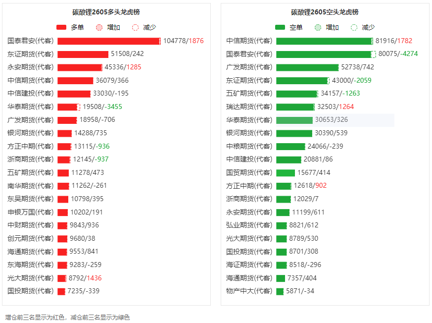 碳酸锂龙虎榜 | 主力合约减仓上行 空方呈退场态势