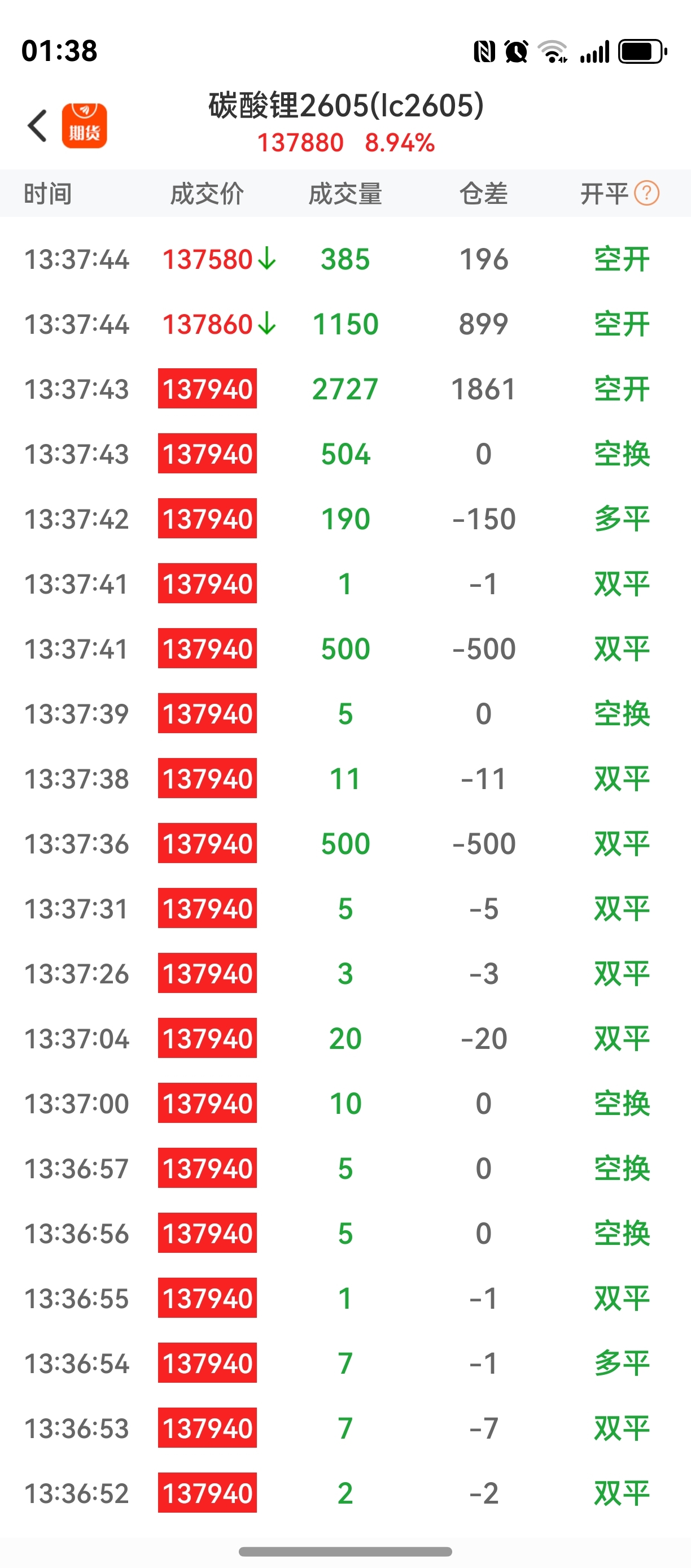 $碳酸锂2605(GFEX|lc2605)$ 直接吃了5000多手,做多的注意了,随时反转