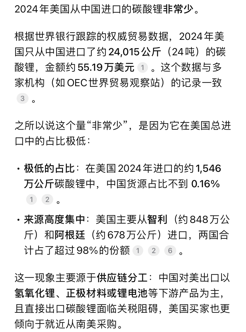 $碳酸锂主连(GFEX|lcm)$ 加不加关税,实际贸易上影响有限,更多是情绪影响,影响碳酸锂高开低开,贵金属上涨带来的偏暖情绪可能会对冲掉一部分关税冲击