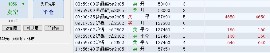 早盘集合竞价空多晶硅5口,开盘后下跌势头低于预期,立马了结!