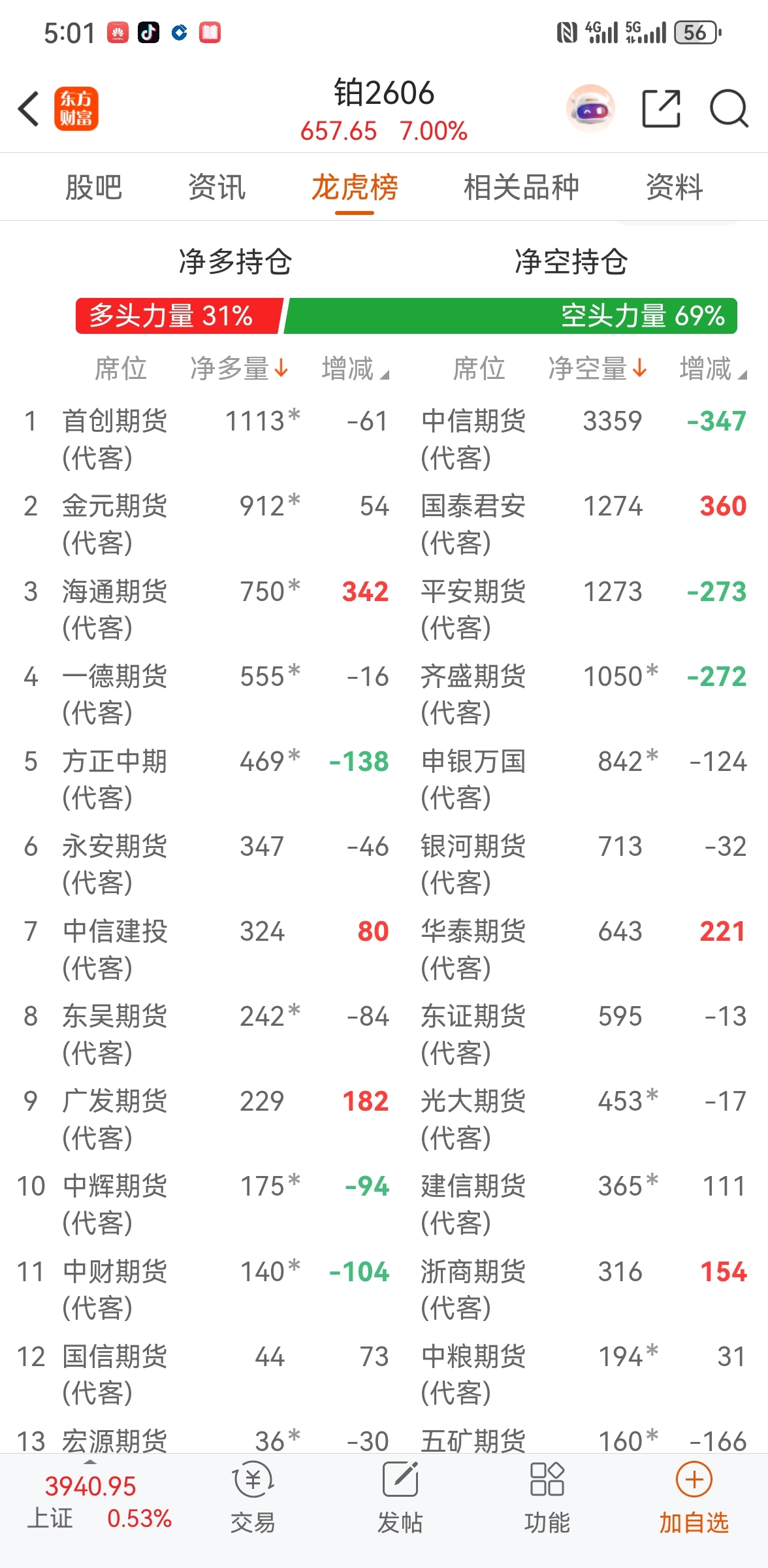 $铂2606(GFEX|pt2606)$ 难怪中信跟国泰一直加仓空,原来他们是要砸外盘,明天完犊子了,不会跌停吧?