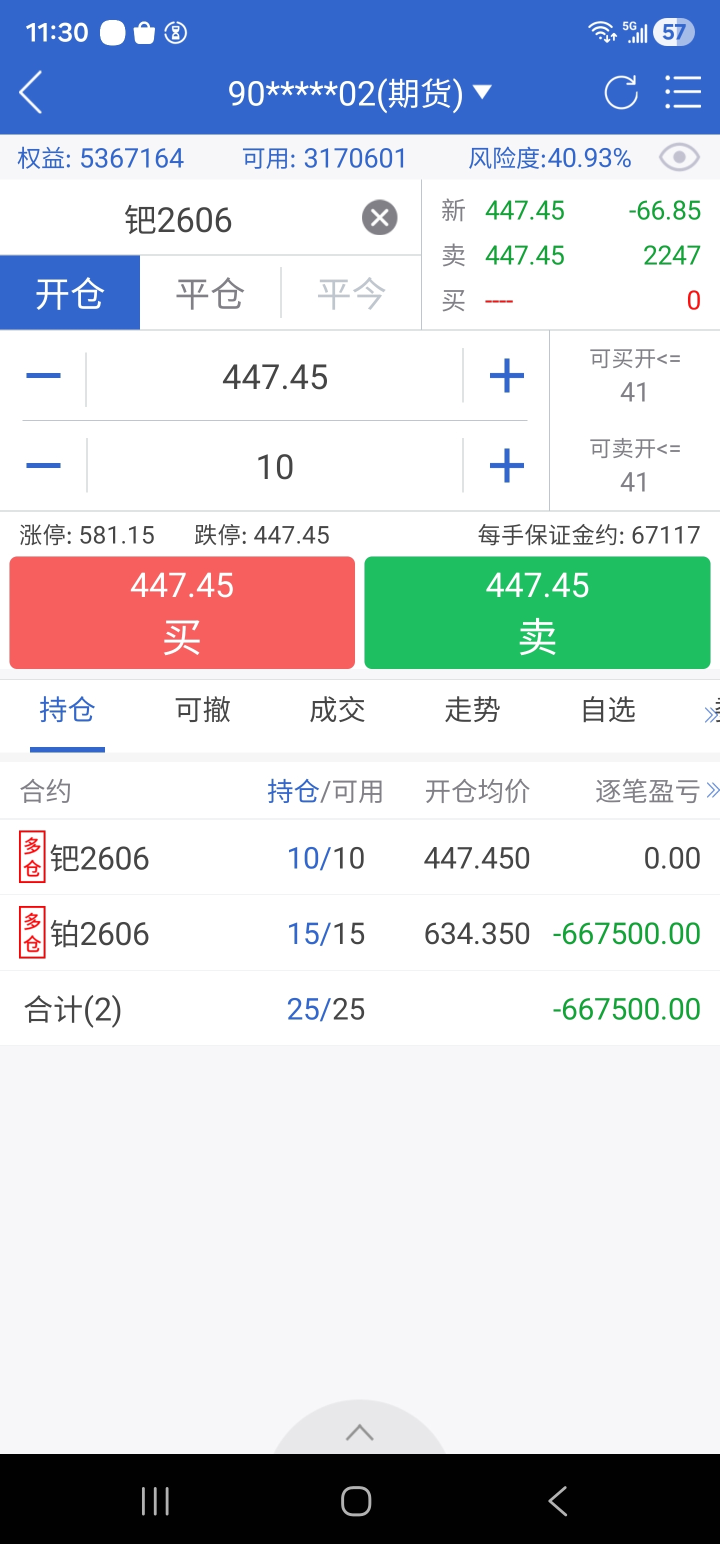 多了10手钯。铂金感觉今天还是钯强一点,没有全合约封跌停。希望能开板出