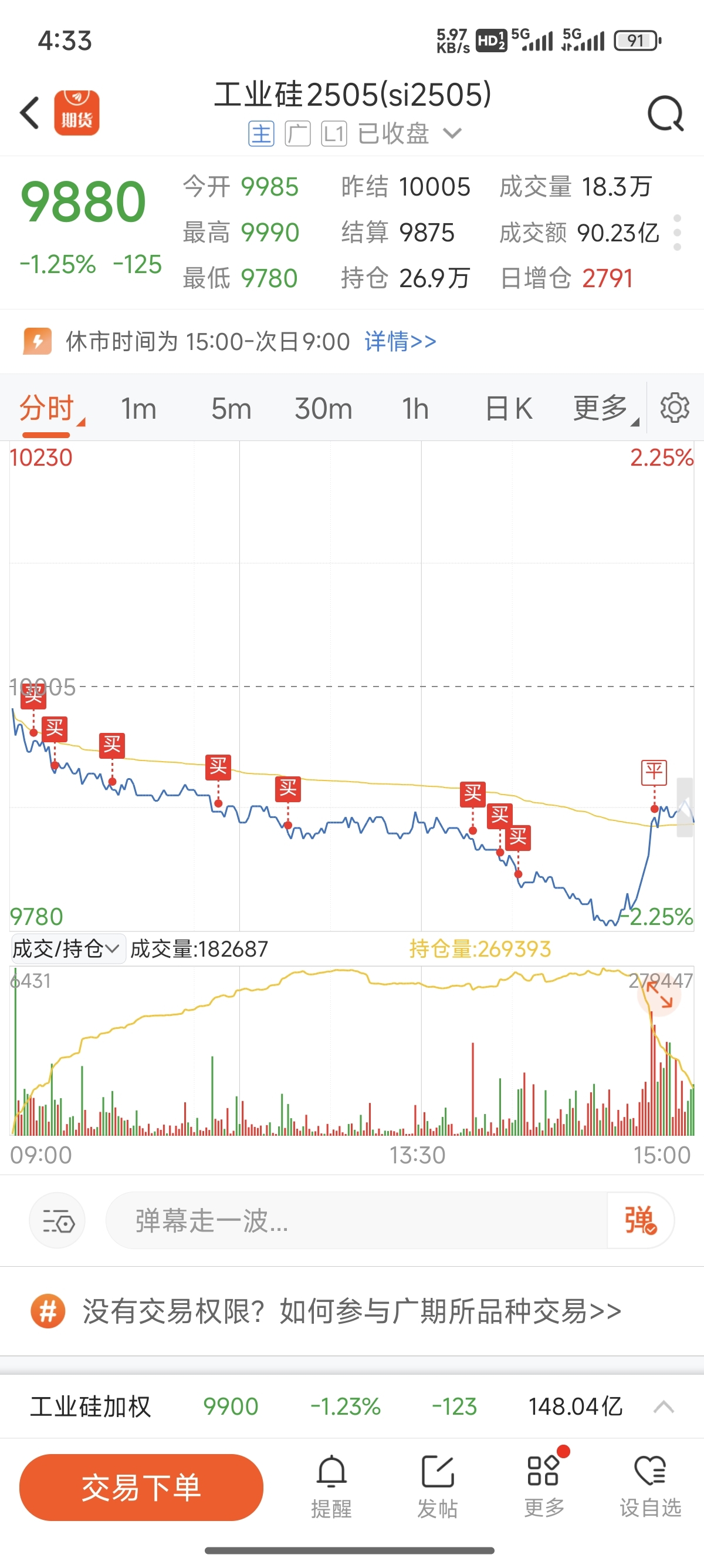 $工业硅2505(GFEX|si2505)$ 还是怕了,回本就跑了