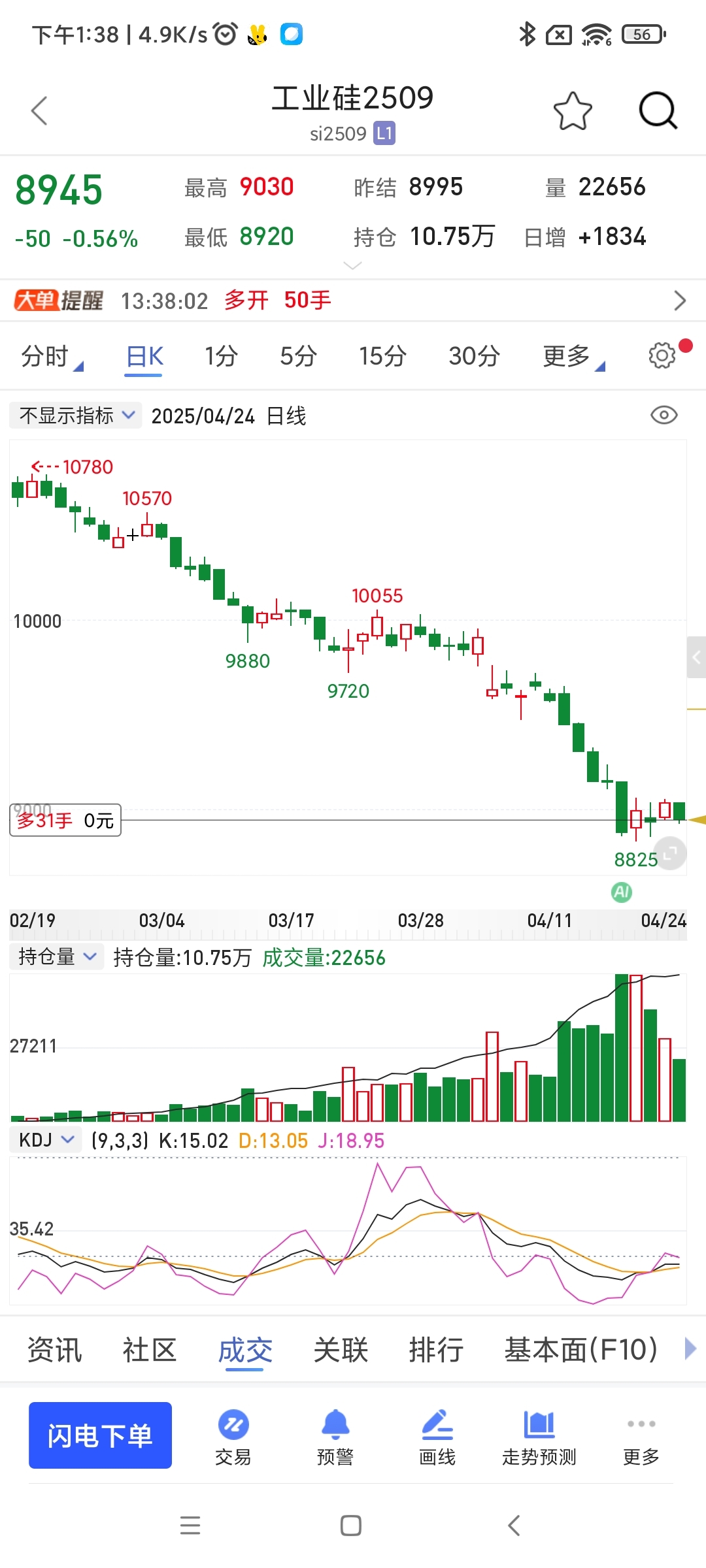 $工业硅2509(GFEX|si2509)$ 各项指标已经表面是底部了,抄底