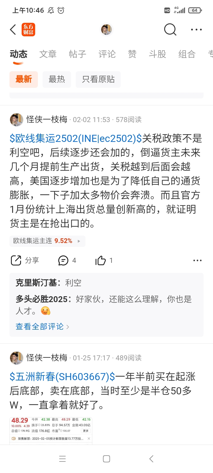 $欧线集运2502(INE|ec2502)$ 2353,怎么说?是不是上周有抢运。总有人说关税过了,没货?关税是累月叠加的,之前新闻1月底货量的报道是验证、美国暂时取消800亿美元关税就是货量推积太大了。我的逻辑依然是:关税抢出口,就会有货,有货挺价就能成功。