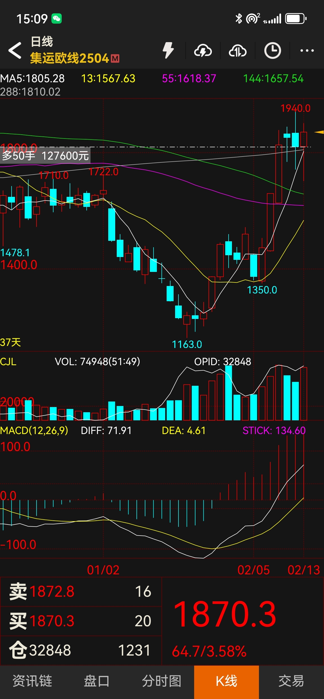 $欧线集运2504(INE|ec2504)$ 早上做了一次小T,继续持仓