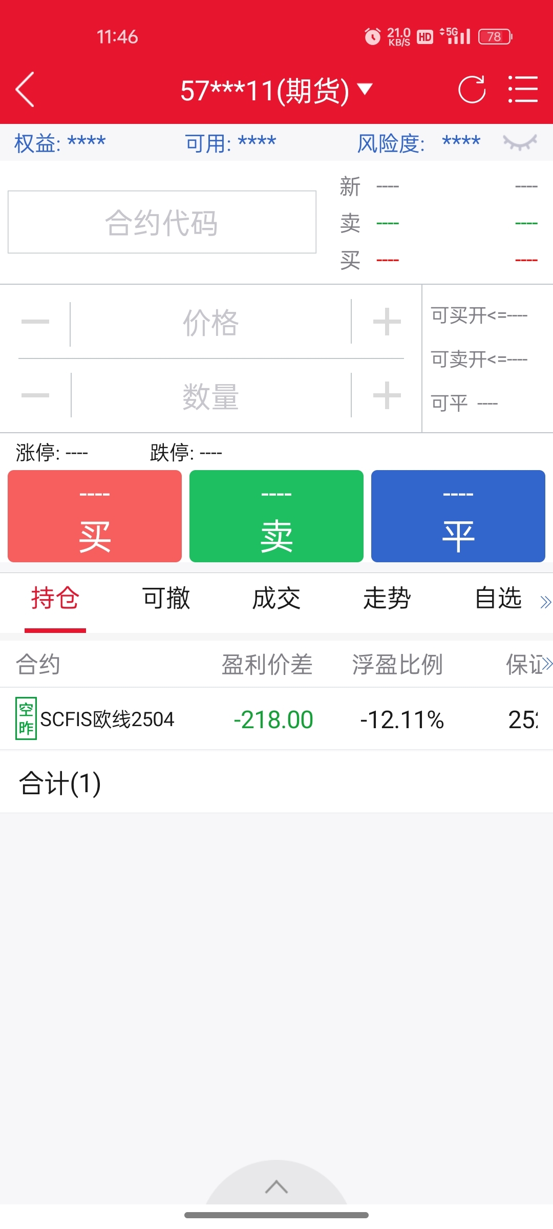 $欧线集运2504(INE|ec2504)$ 老是呢纠结了,现在这个账户24年10月22号开的,马上四个月了,以目前的价格止损的话,本金亏损1900在犹豫要不要止损再见!