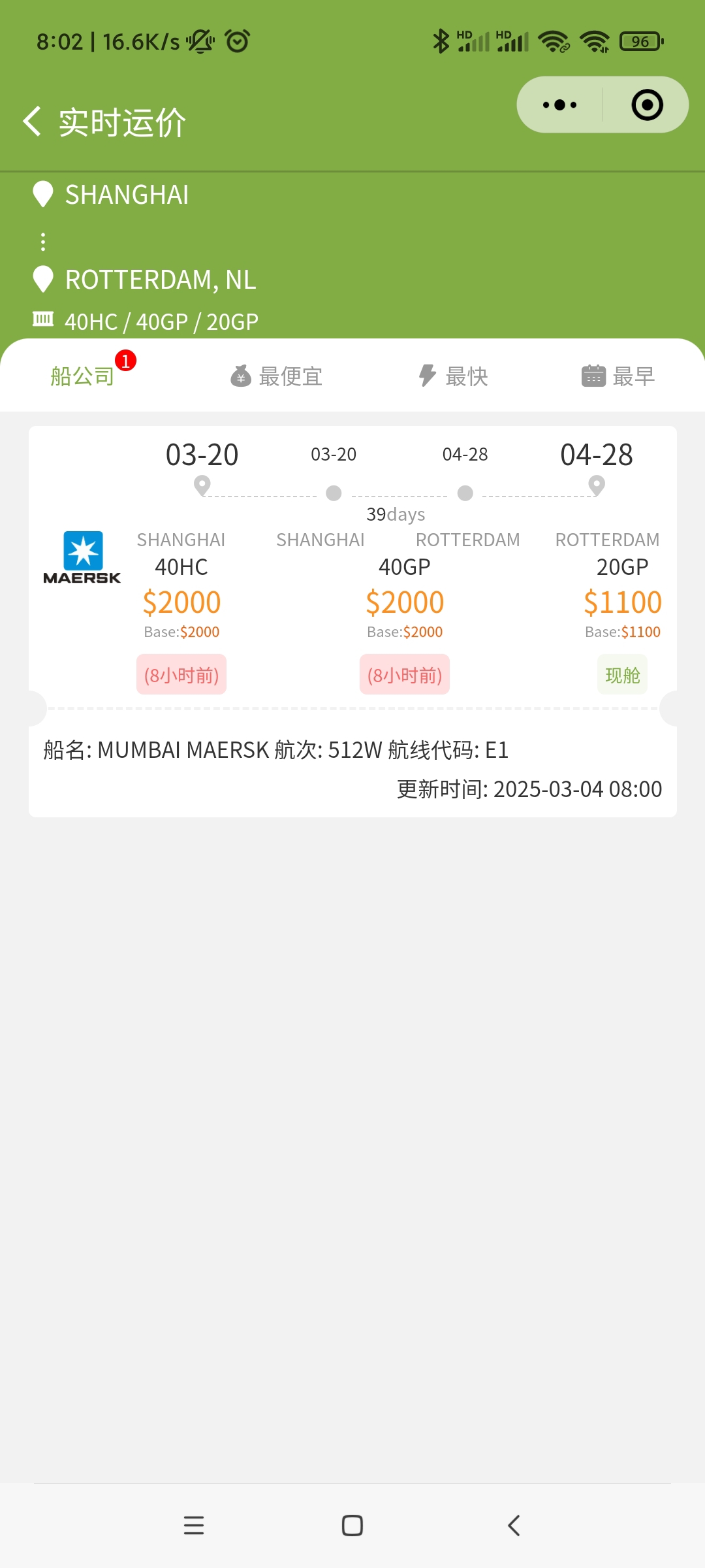 马士基是不允许别家报价比他低的,所以报价来到大柜2000,小柜1100.这才刚刚