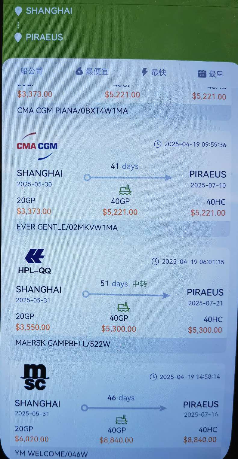 $欧线集运2506(INE|ec2506)$ 地中海这个,目前开仓了大概八九个地中海港口。有人说是星期天调试哈,但星期五应该就在了。昨天其他几地没更新,今天宁波,青岛,天津好像才更新的,有没有专业人士讲下的。毕竟也没当真,及时把数据提供给大家参考