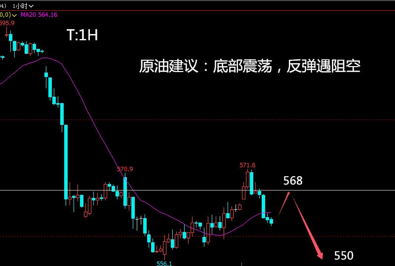 原油2504:原油延续底部震荡整理,回升测试上方阻力区域压制回落,整体的势头依然偏空,后续看行情的回升测试力度,遇阻回落可择机空单布局。操作建议,原油回升测试568一线遇阻不破可进场空单,目标看下方550一线,损5个点。