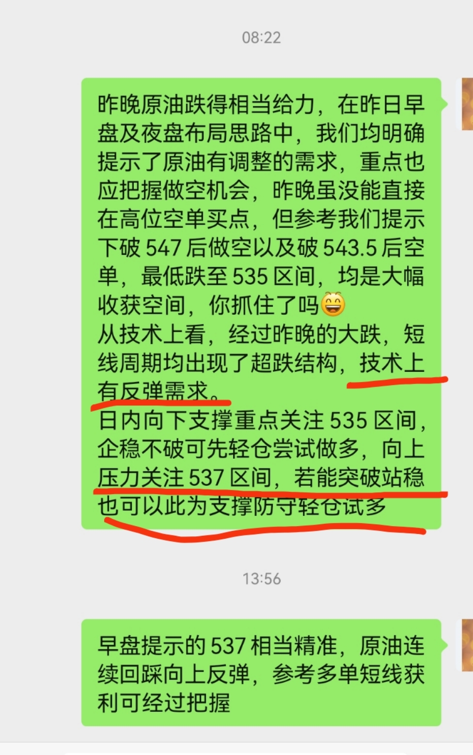 早盘对合作用户提示的原油有反弹需求,535或突破537做多,参考我们思路多单,日