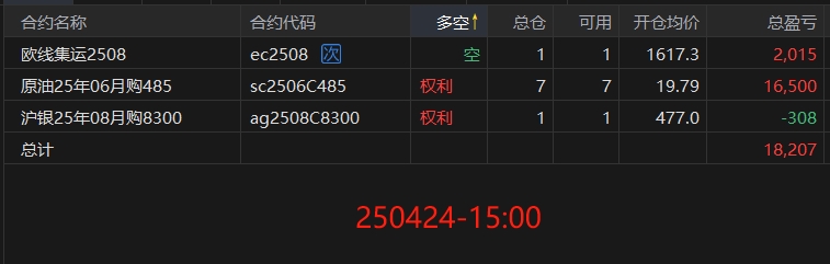 昨晚夜市中把成本为477.2元的原油以483.9元价格清仓了,加上原油期权的收益