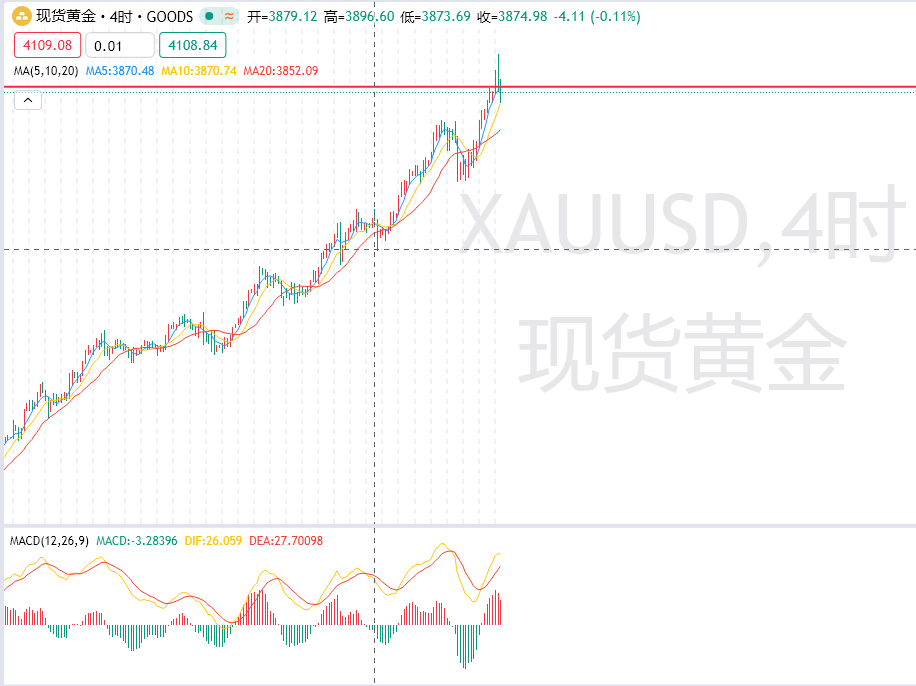 目前黄金已经跌破4100,空头或还会持续,参考4小时均线压力;