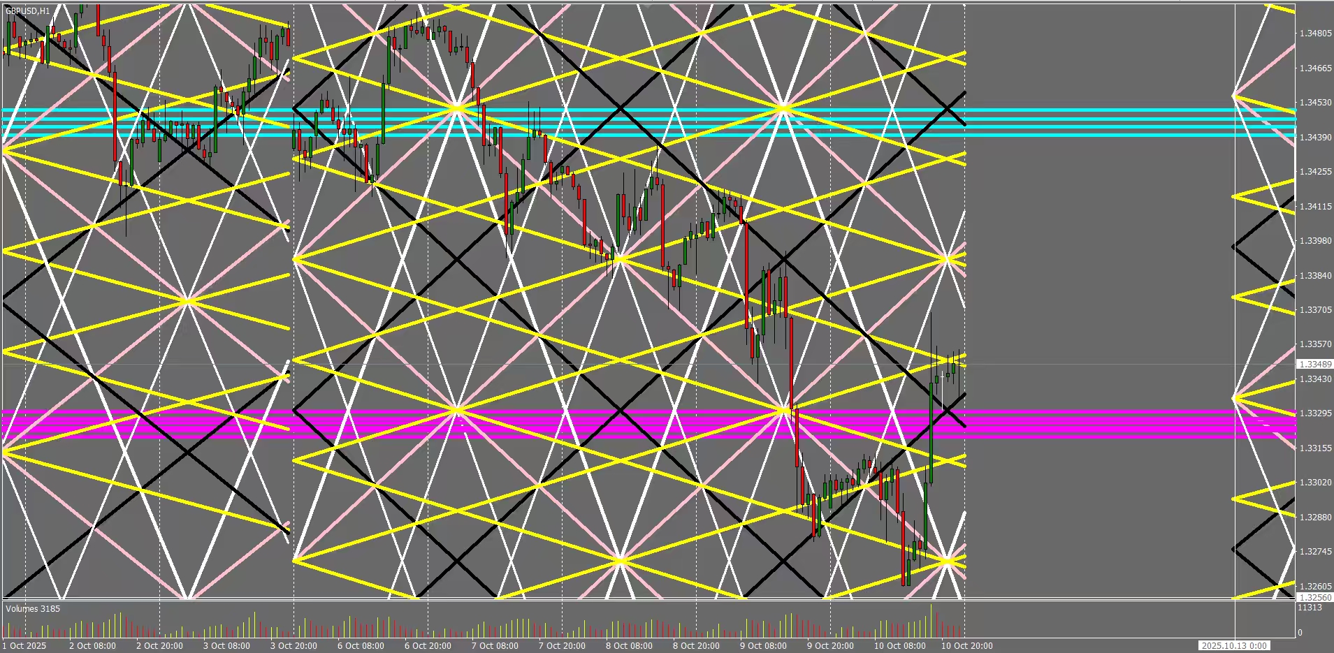 镑美小时线。回顾上周的。总结经验教训。最主要的,是画定下周的线族,是每个周末必须