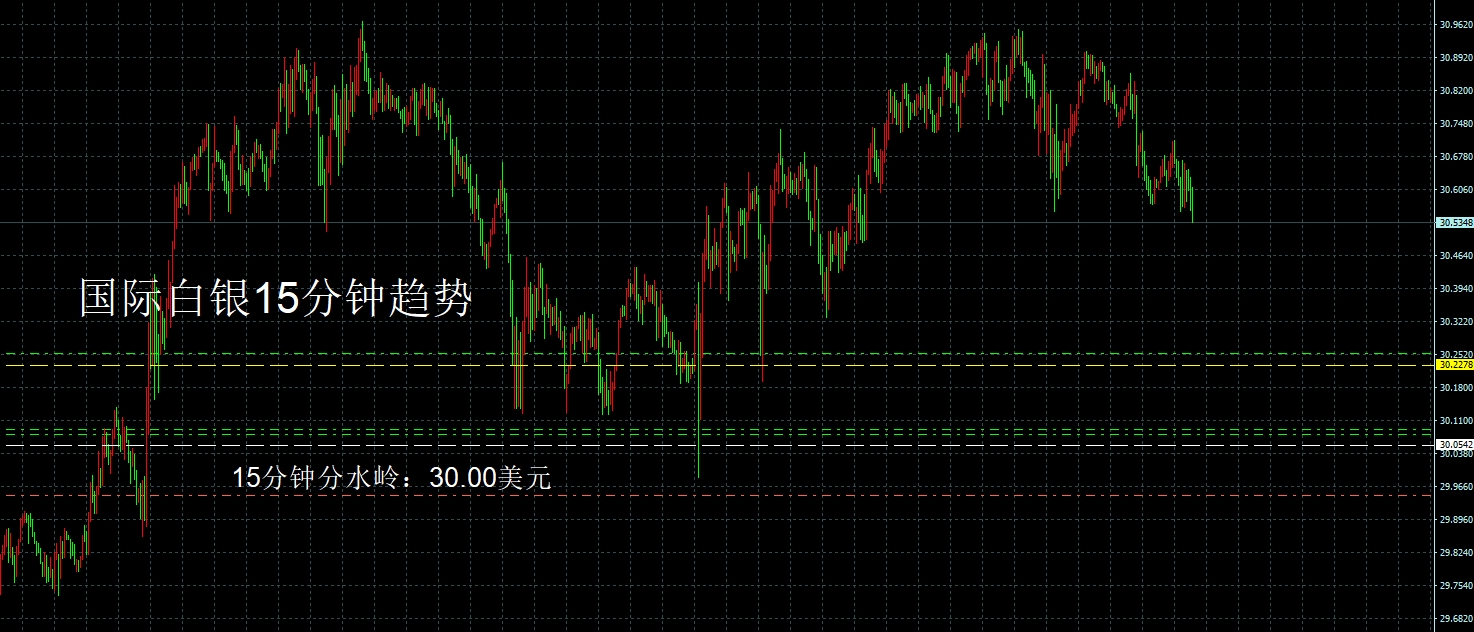 $白银/美元(FORPM|XAG)$ 国际白银短期再次受阻回调,此时15分钟级别面临支撑重新回踩的局面。多头方向目前还在保持,分水岭依然在30.00美元附近。方向上,仍然是低吸北上为主。破30.00关口后,15分钟级别的上涨趋势才会结束。