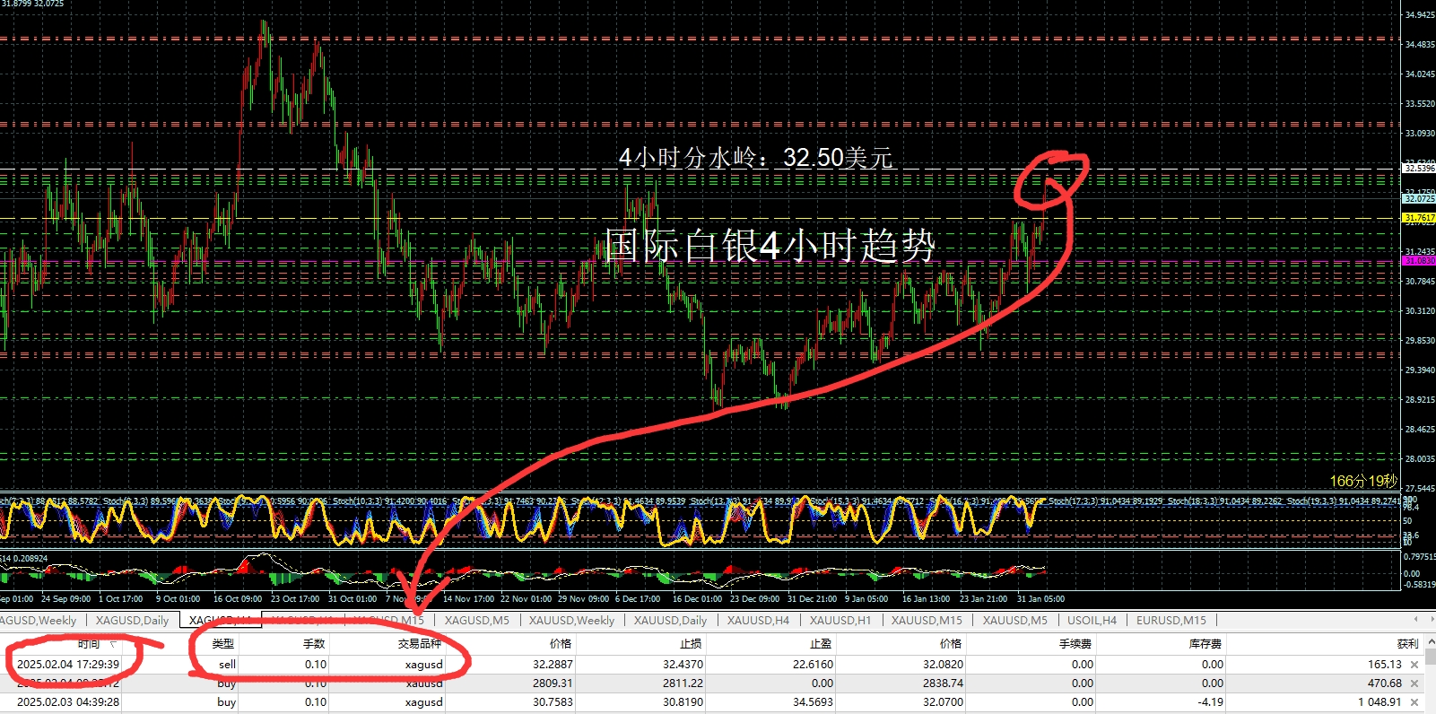 前一个动态,红茶说了白银反弹到4小时的最后压力关口,32.50美元附近了。此时,