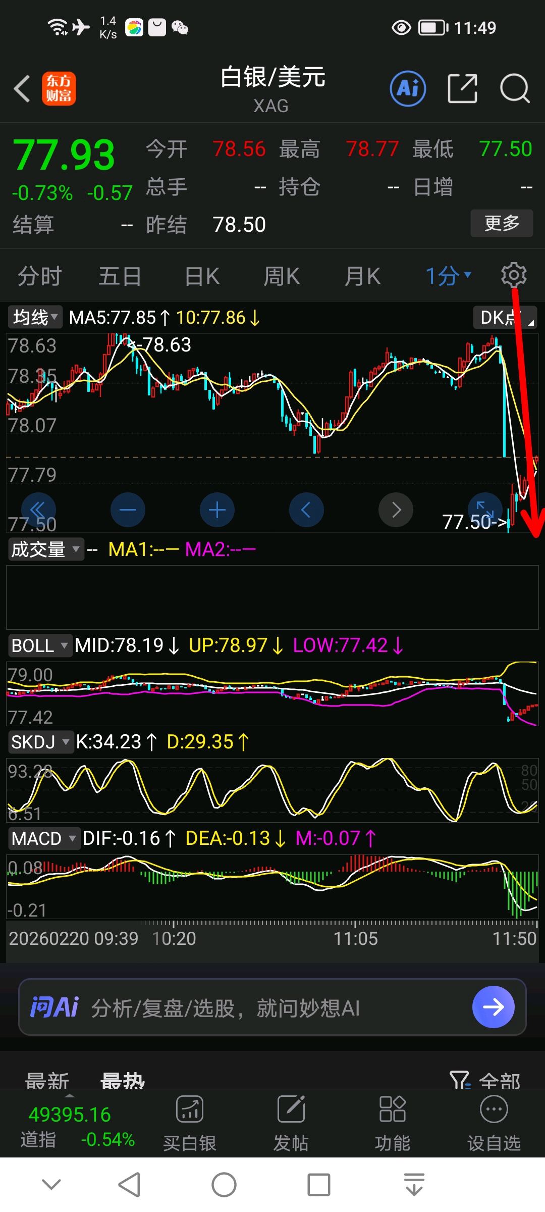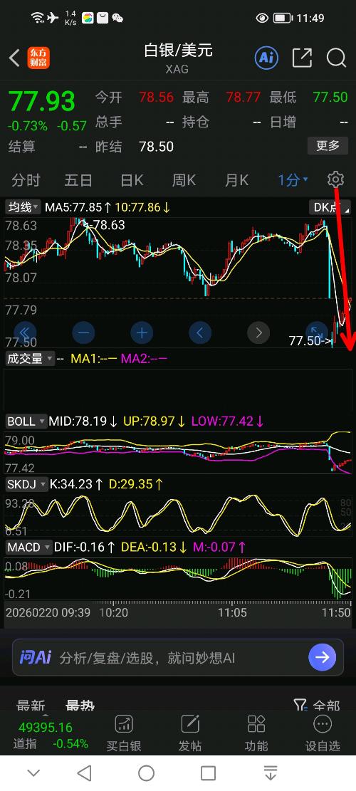 综合判断:白银处于关键阻力位下方的蓄势状态,今日收盘78.50美元已站上短期均线,下一步需观察能否突破79.48美元及50日EMA。若能有效突破,上涨空间打开;若遇阻回落,则可能回踩78.50美元支撑。
