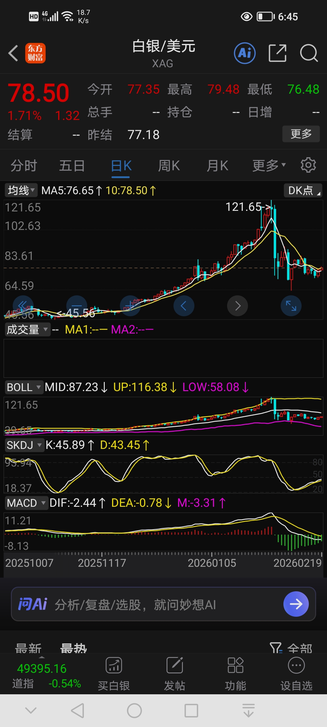 数据说明:本文收盘数据来源于东方财富,国际现货黄金报4996.30美元/盎司,国际现货白银报78.50美元/盎司,与截图完全一致。不同交易软件显示可能存在细微差异,请以各平台实际报价为准。以上分析仅供参考,不构成投资建议。贵金属交易风险较高,请根据自身风险承受能力谨慎决策。