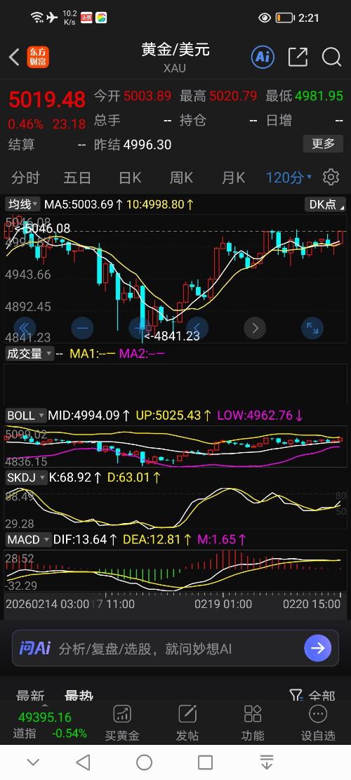 综合判断:黄金当前处于多头趋势中的震荡蓄势阶段,5000美元关口是短期争夺焦点。若能站稳则有望向上测试5022美元乃至更高;若久攻不破,可能回踩4977-4959美元区域。中长线趋势依然看涨。