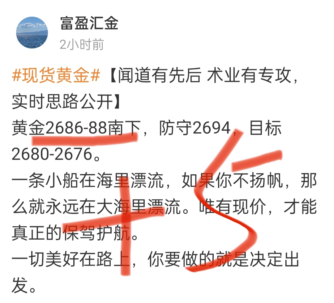 【准确的策略经得起考验】黄金2686-88空,现2683,收5点,短跑减餐,其他