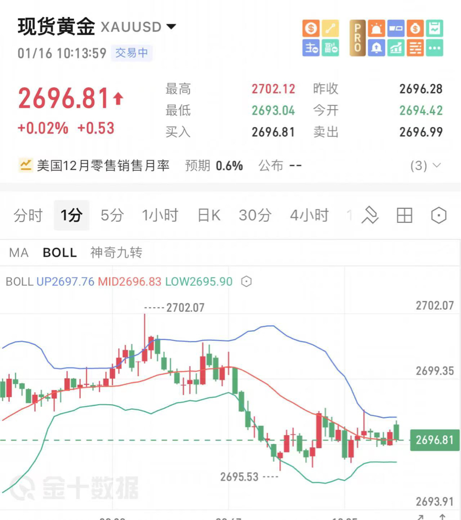 黄金早间破高2700,午间短线操作上顺势做多为主,等待2695附近做多,止损:2