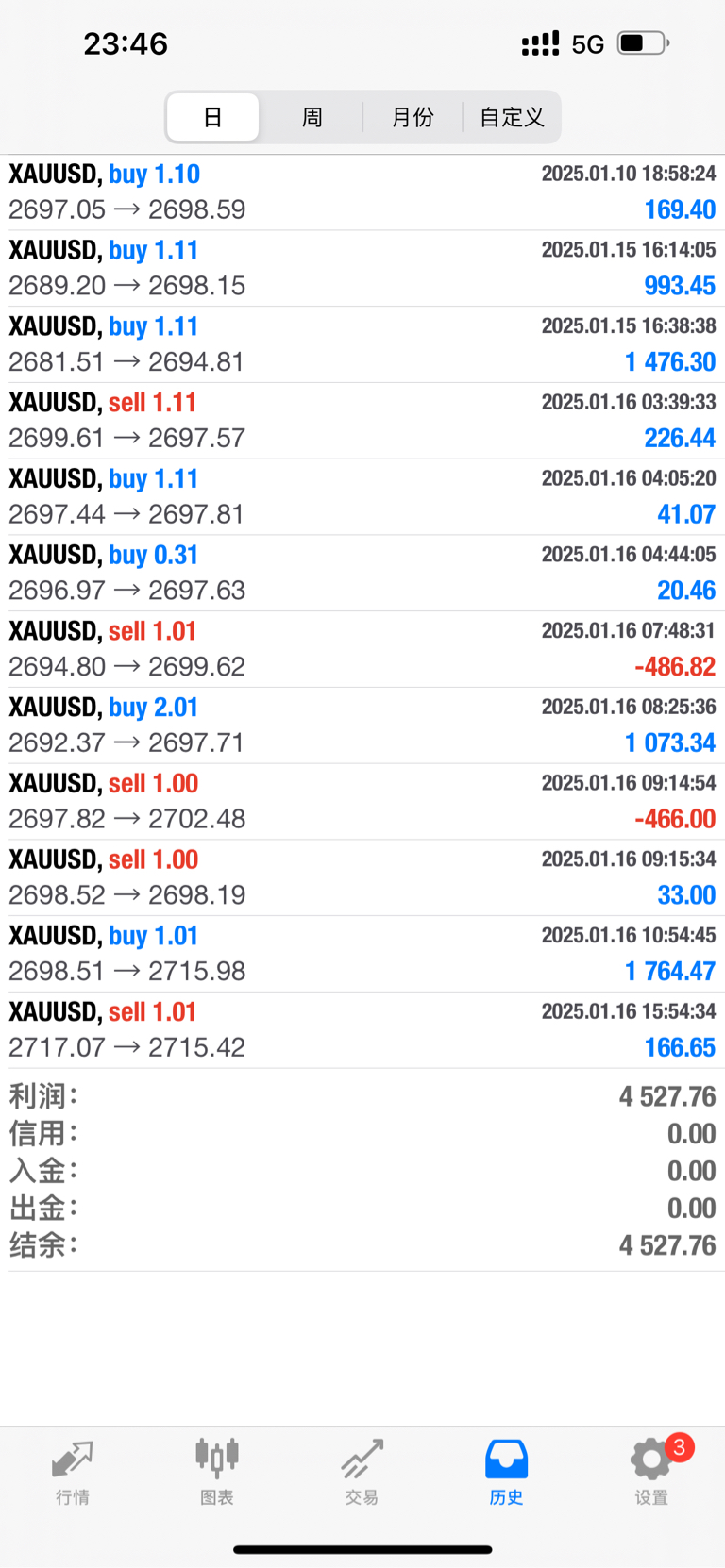 $黄金/美元(FORPM|XAU)$ 打了两次损,不过总体也是赚的,落袋$4527,还是那句话:思路验证交易水平,时间考验操作能力!