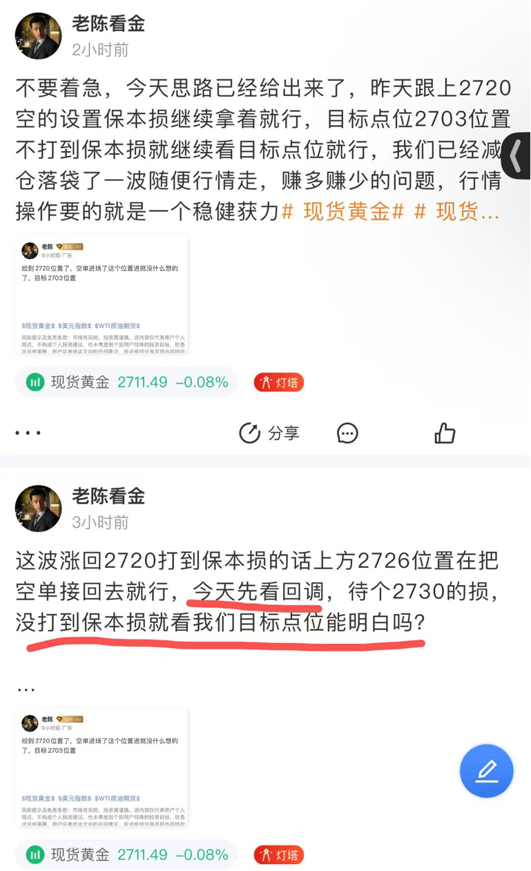 让你们不要着急,昨天我们空单都还没走完就着急忙慌的去进多?虽然多头最近很强但是走到高点肯定会有回调啊,急什么呢。跟上2720空的继续看目标点位