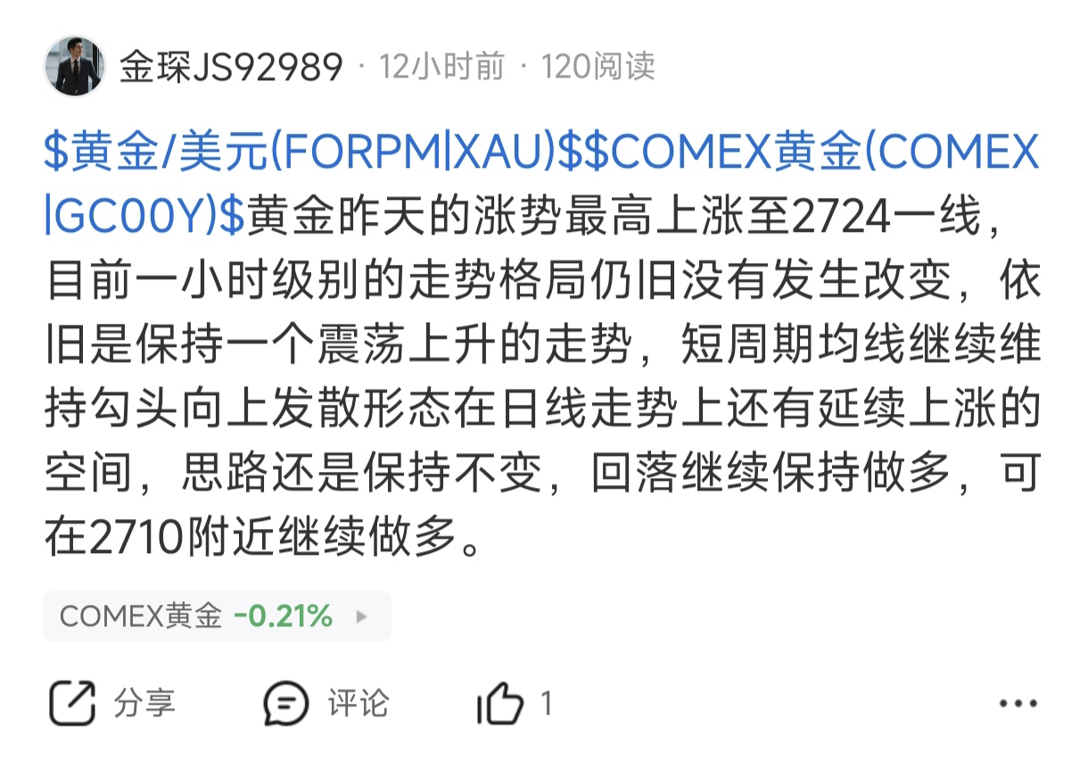 黄金我们的多单已经是上来2714一线也是有120个点,不枉费耐心等待了这么久,极