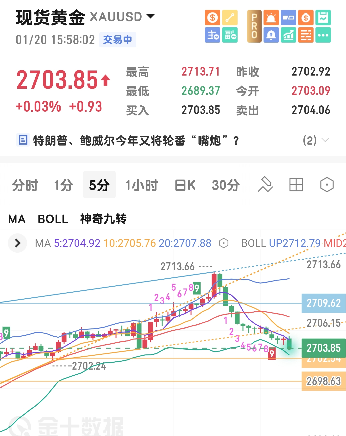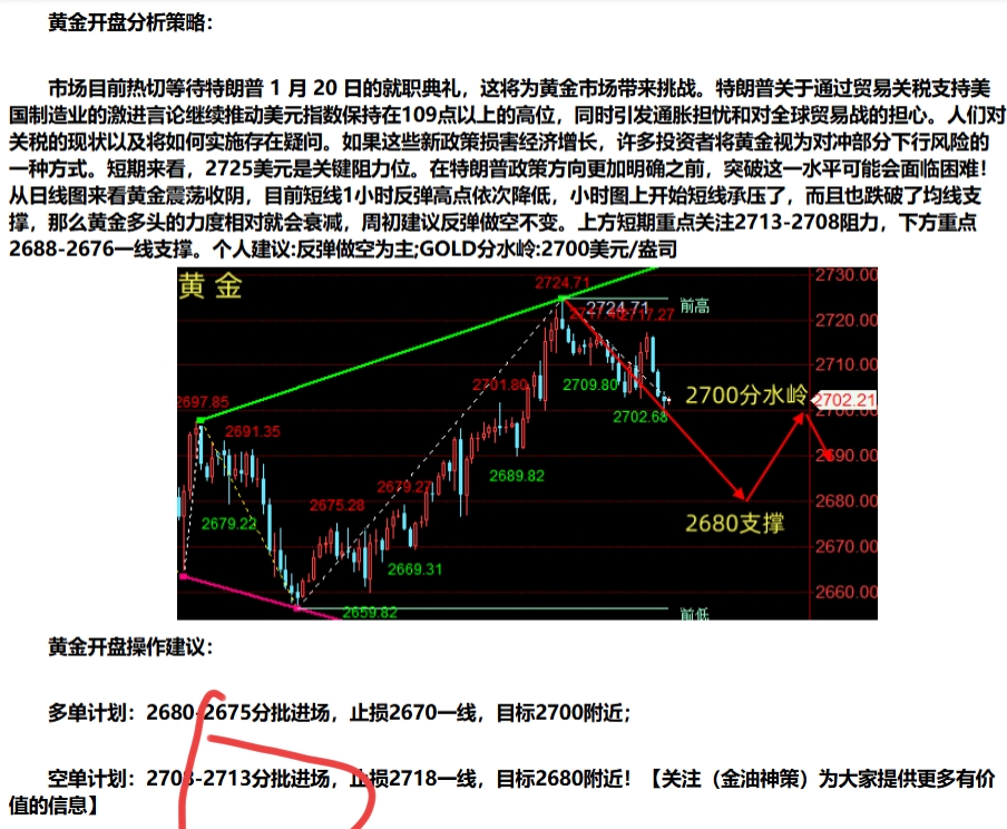 提示:早间开盘布局2713附近空单,现报2703一线,建议跟进的朋友,稳健获10