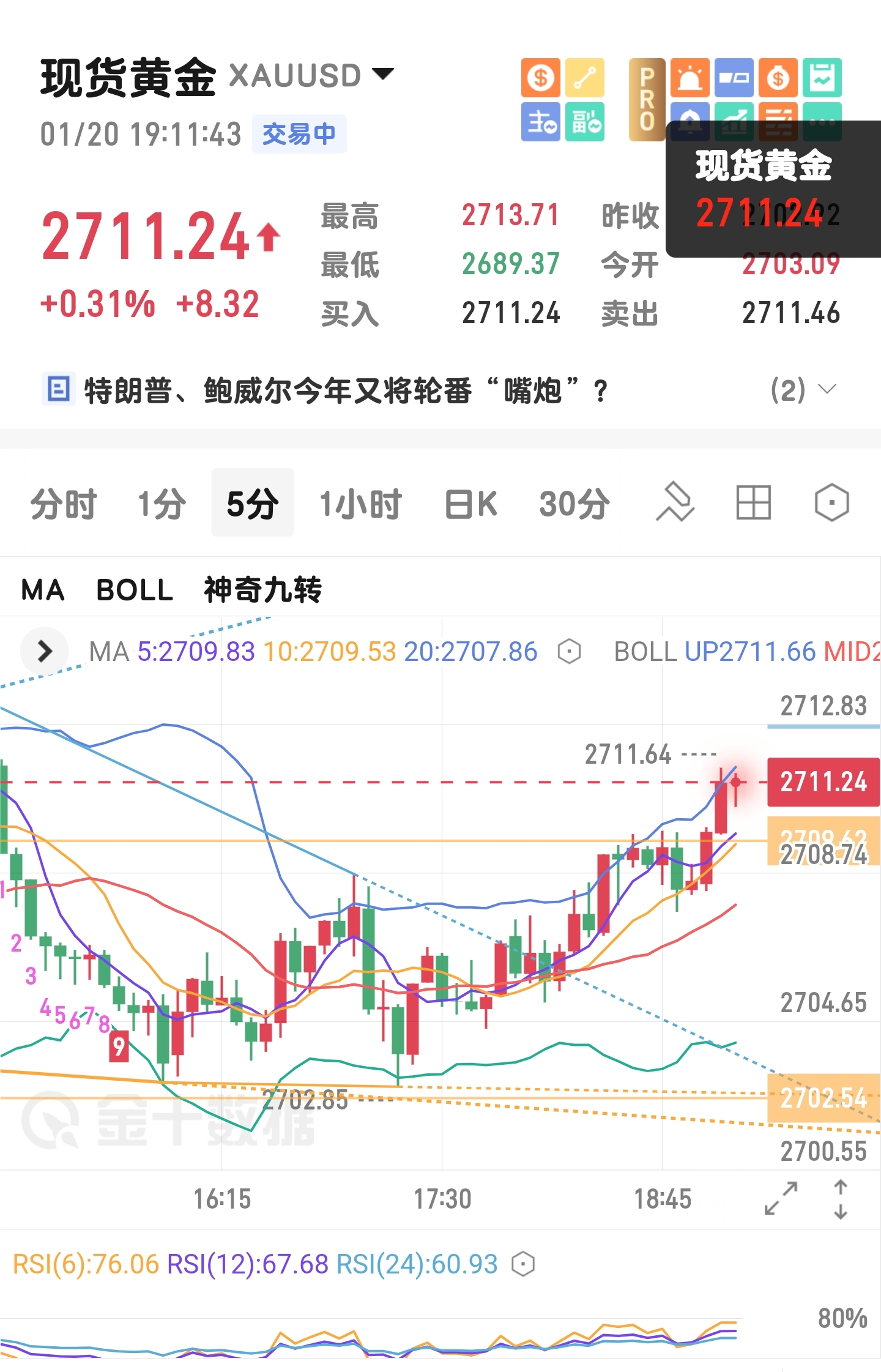 提示:黄金现报2711一线,建议2703附近多单,稳健获8美金减持!