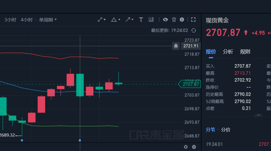 $黄金/美元(FORPM|XAU)$ 大家晚上好,黄金2708-2710附近做空,目标2700-2695.止损2715.5