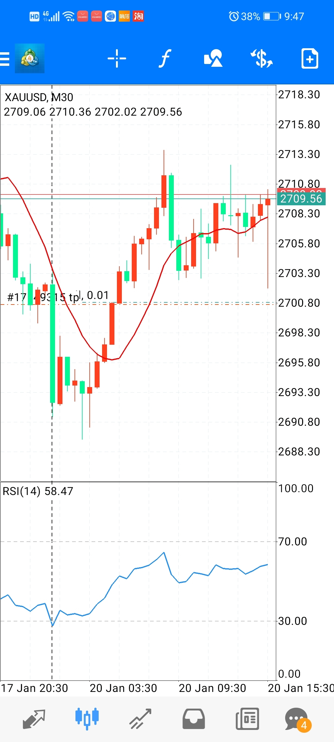 上午到现拼命打压0.01,黄金这么穷的吗?技术线回调下马上上涨