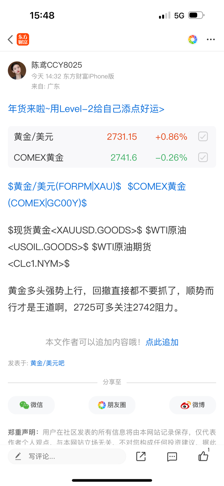 $现货黄金$$WTI原油$$WTI原油期货$黄金多头勇者得胜利,2725直接就是