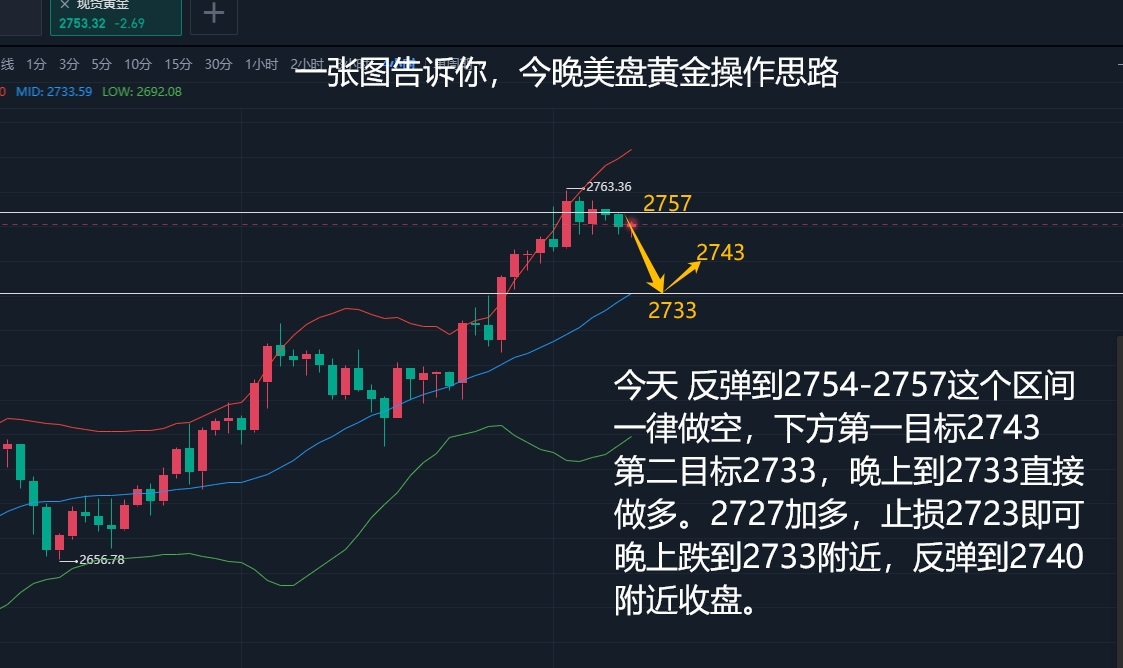 $黄金/美元(FORPM|XAU)$ 一张图告诉你,今晚美盘黄金操作思路