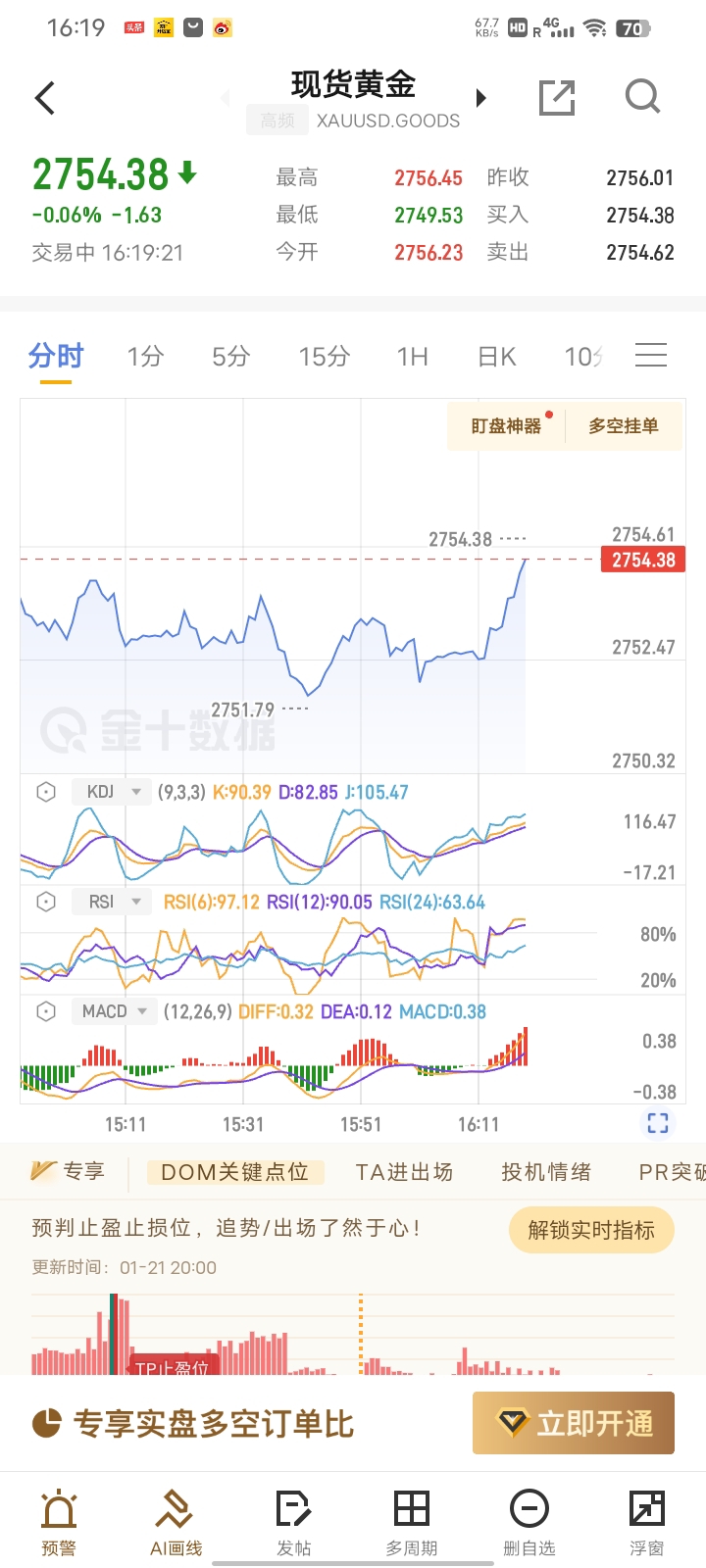 欧盘还在震荡区间内,其中1小时图上看已跌破中轨,4H图MACD有形成死叉迹象,张姐2754建底仓空进场,上方2660附近补仓。目标超短线看2750,破位看2745-2735。