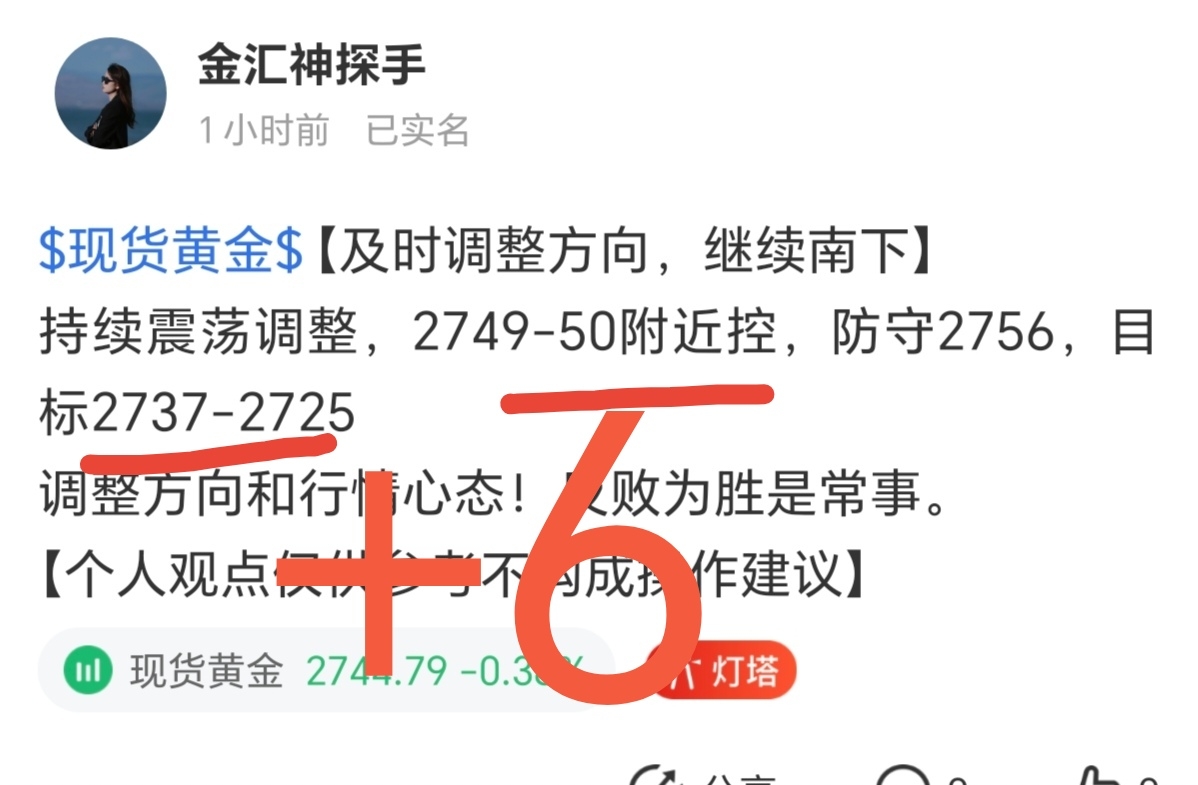 2749-50附近控虽然进场早一些,现价来到2744,标准一手600美刀,根上朋友减苍出低留高,震荡走势大家稳健5-8个点可以离场,继续看目标2740破位,未企稳下破则反手哆!