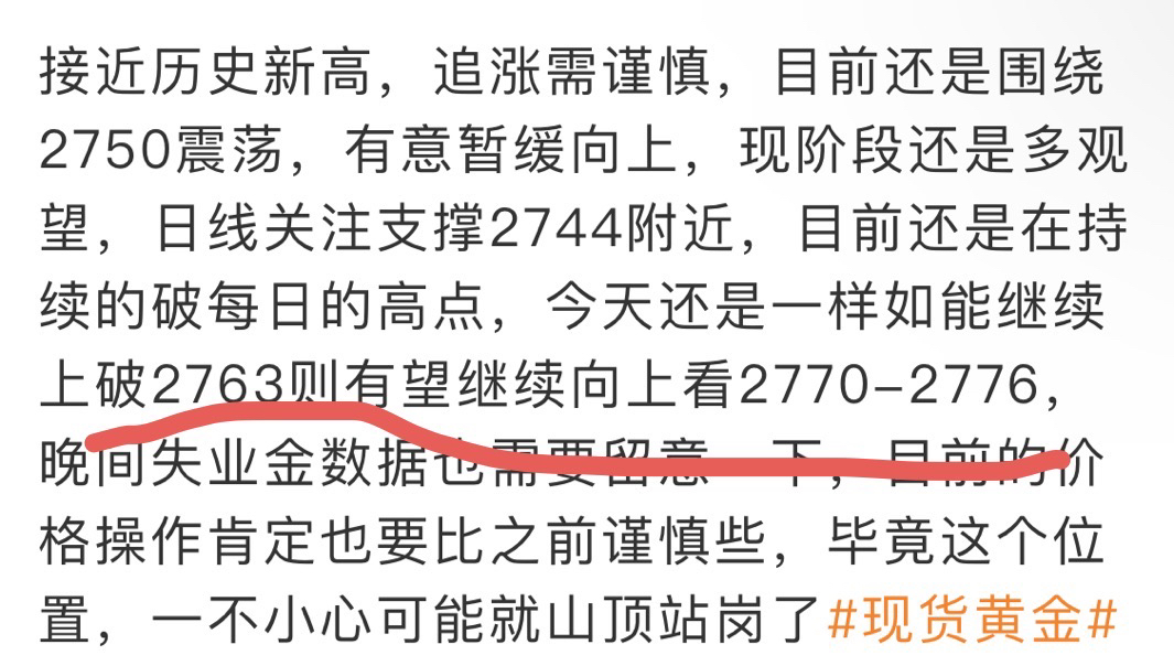 逼近历史高点了,昨日黄金回踩2735附近得到支撑反弹,再次打破日内高点2663继